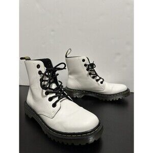 Dr. Martens Luana Boots Women Size 8 White Leather Round Toe Lace Up Combat