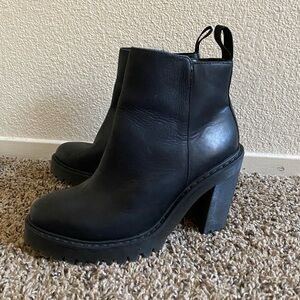 Dr. Martens Magdalena Chunky Heel Zip Ankle Booties. Black leather, inside side zip closure. Size 8. In gently used condition.