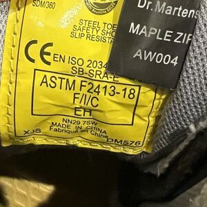Dr. Martens Maple Zip Steel Toe Safety Shoe Slip Resistant Women's Size 7 Black