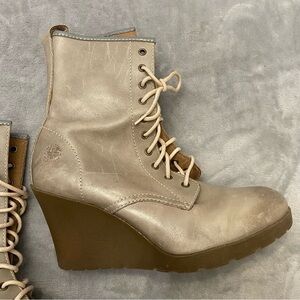 Dr. Martens Marcie Gray Tan Leather Almond Toe Lace Up Wedge Ankle Boots Size 6