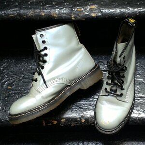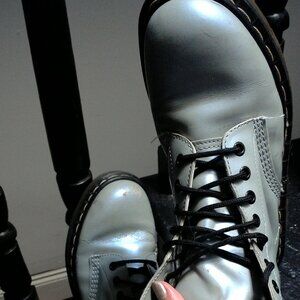 Dr. Martens Pearlescent Irridescent Grey silver womens 8 eyelet boots mens 6
