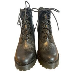 Dr. Martens Persephone Pebbled Leather Fur Lined Heeled Combat Boot Black Sz 9