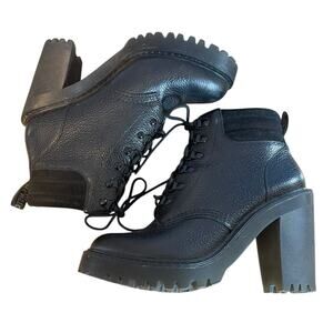 Dr. Martens Persephone Pebbled Leather Fur Lined Heeled Combat Boot Black Size 9-Excellent pre-loved Condition-minimal signs of wear if any-like new
