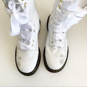 Dr. Martens RARE wedding 1c57 rose etched tall 14 hole ribbon laced boots