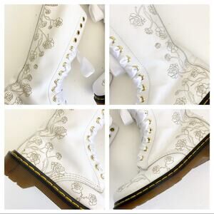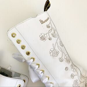 Vonda//1c57 14 hole tall white boots with trailing roses tooled/etched into the leather. Dr martens authentic DOCs.