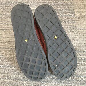 Red canvas lace-up Dr. Martens. These have only been worn a couple of times and are in like-new condition, the only wear can be seen as light creases on top of the toe box.