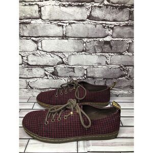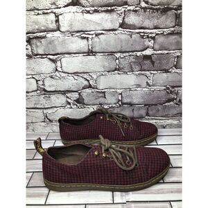 Dr. Martens Samira Burgundy Black Plaid Fabric Lace Casual Shoes Women Sz 11M US