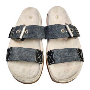 Dr Martens Sandals Mens 10 Denim Double Strap Thick Chunky Slides Beach Vacation