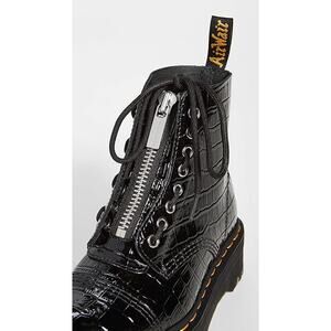 Featuring a mid-calf shaft, platform sole, front lace-up design with zipper closure, adjustable straps, and crocodile-embossed Oxford leather. Signature yellow stitching. Heel loop tab for easy pull-on. Durable rubber sole with bold tread. Material: Outer: Synthetic; Upper: Oxford leather; Sole: Rubber. Platform height: 2" (50mm). Fits true to size