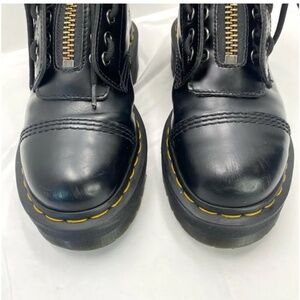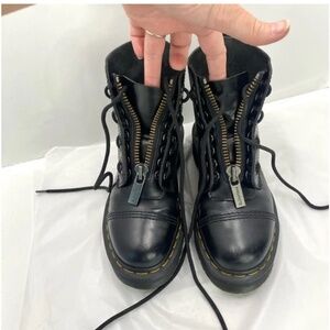 Zip on this heavy-duty ankle boot with rugged military style to stomp around town with major punk attitude. In great pre-owned condition, some light wear, faint scuffs , clean, see photos Original msrp $210 See photos for approximate measurements, details 2" heel; 1 1/2" platform (size 7 US/5 UK) 5 3/4" shaft Lace-up style; front zip closure Leather upper/leather and textile lining/synthetic sole Imported Punk, combat, rockerchic, goth gothic ,