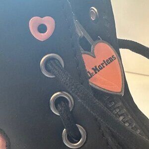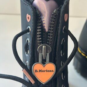 Docs Women's size 5. Just bought these for my daughter and she didn't like them! HOW? These boots are SO cute! If I fit these they would be mine no question. The boots are detailed with lilac and peach Satin Lux heart patches and the removable jungle zip is fitted with a heart-shaped pull. The top eyelet is a peach heart shape. See pics for details.