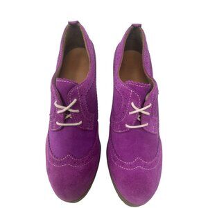 Dr. Martens Sita Purple Blackcurrant Suede Leather Wingtip Brogue Wedge Platform Heels Size 8, Retro, Modern, Maximalist, Maximalism