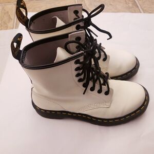 Dr Martens Size 7 Airwalk Original Smooth Leather White Combat Lace Up Boots. Dirt marks mostly on the inner sides one small toe scuff. Insoles and outsoles in great condition.