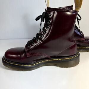 Dr. Martens Size 8 1460 Cherry Red Lace Up Combat Boots Vegan Patent Leather