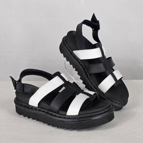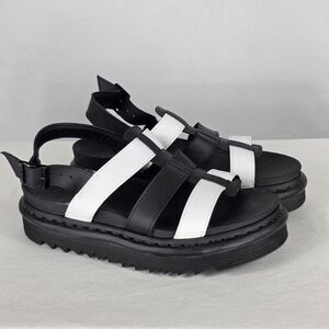 Dr Martens Size 8 Yelena Black White Leather Platform Chunky Strappy Sandals