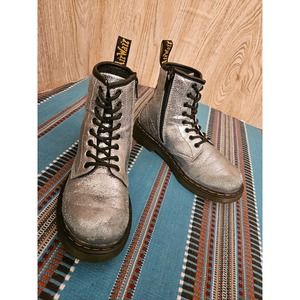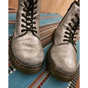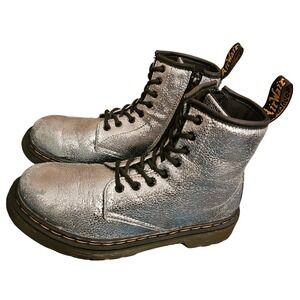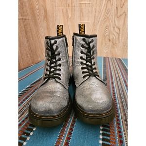 Dr. Martens Special Edition Silver Crinkle Metallic Lace-Up Boots Junior Size 3