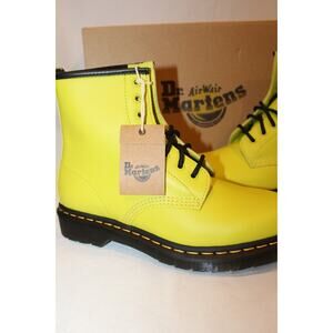 Bright yellow/green combat boots. Iconic Dr. Martens style. Durable and stylish.