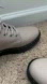 Classic Dr. Martens boots in Taupe Features sturdy lace-up design and robust soles.