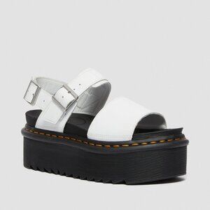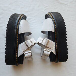 Dr. Martens Voss Quad Platform White Leather Strap Sandals Adjustable Buckle