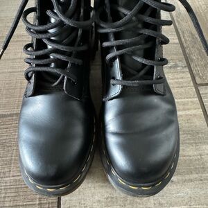 Dr. Martens WOMEN'S SMOOTH LEATHER LACE UP BOOTS size 8. Great condition. Dr. Martens Smooth leather, grooved sides, yellow stitching, and a comfortable, air-cushioned sole.