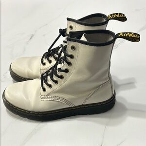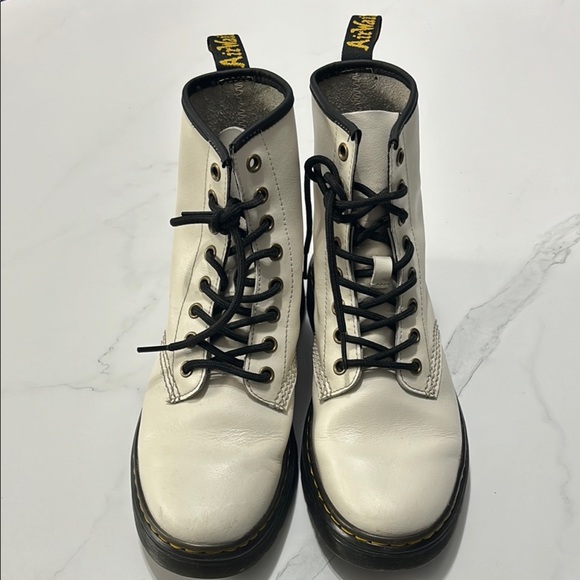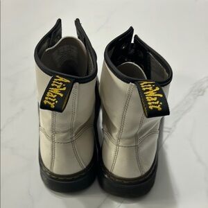 Step out in style with these Dr. Martens white leather boots. Perfect for any occasion, these boots offer both comfort and durability.