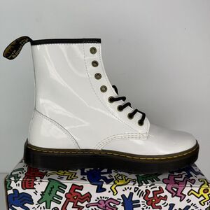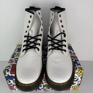 Dr Martens White Zavala Patent Combat Boot Lace Up AW004 Women's Size 10 Mens 9. Shipped with USPS Ground Advantage.