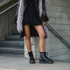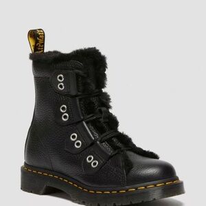 Dr. Martens Women 1460 FAUX FUR LINED LEATHER LACE UP BOOTS Black sz 8