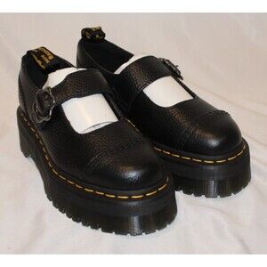 Dr Martens Women Addina Flower Buckle Mary Jane Leather Platform Sandals BLACK