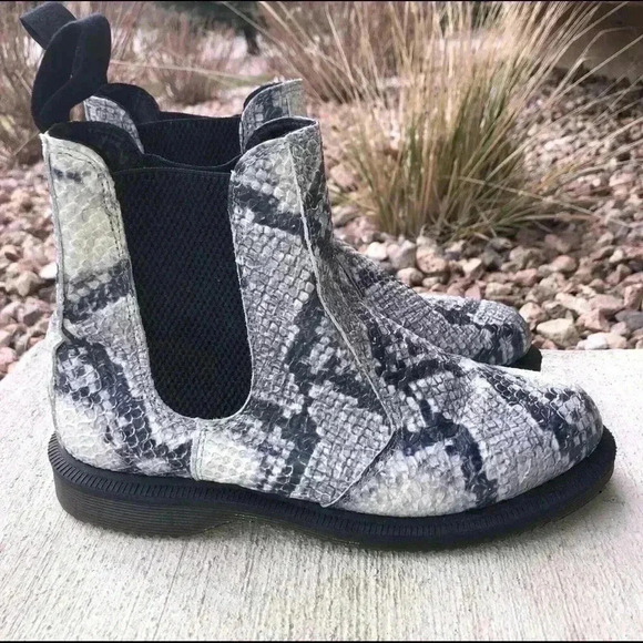 Dr Martens Women’s Flora Chelsea Boots Size 5 Light Gray Snake Print - 2319605. Condition is Pre-owned. Shipped with USPS Priority Mail. Tiny spot on toe, pictures provided.