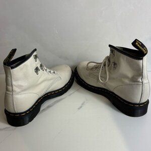 Dr Martens Women Hardware Leather Heeled Ankle Boots Off White Size 9