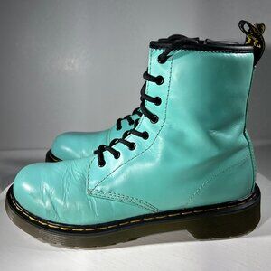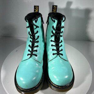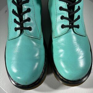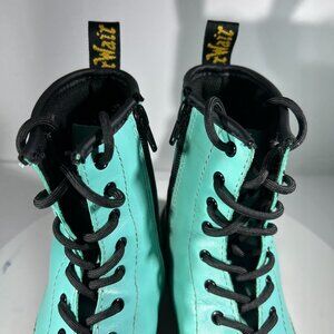 Dr Doc Martens Women Leather Combat Style Boots 8-Eye TEAL Blue Green SIDE ZIP Lace Up Colorful Stylish Cool Preppy Shoes