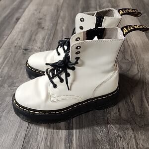 Dr Martens Women White Solid Platform Combat Boot Jadon Lace-Up Size 7. There is wear on the front left toe and creases on each and a small crease on the back see photos for detail.
