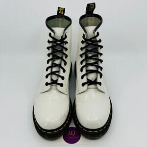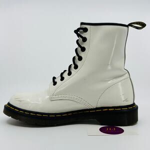 Dr. Martens Women's 1460W White Smooth Patent Leather 8-Eye Lace Up Boots Size 9