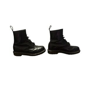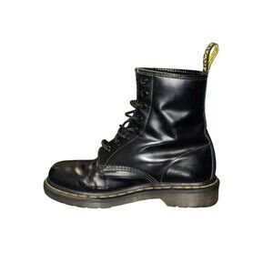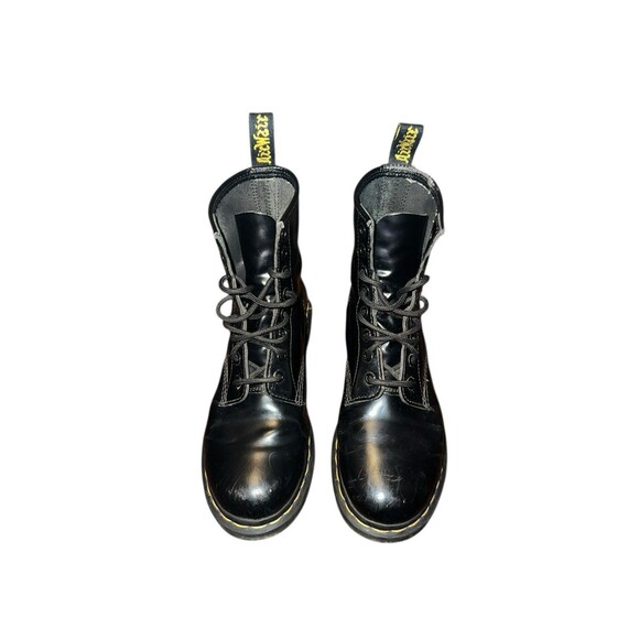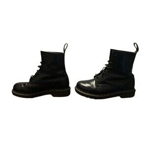 Dr. Martens Womens 1480W Black Leather Lace Up Ankle Combat Boots Size 7 Grunge Goth Shiny