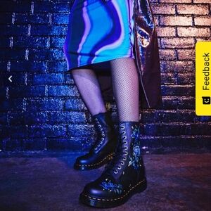 Dr. Martens Women's 1490 Floral Mystic Graden Style Boots Black Leather Size 5