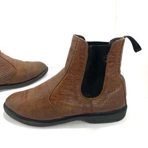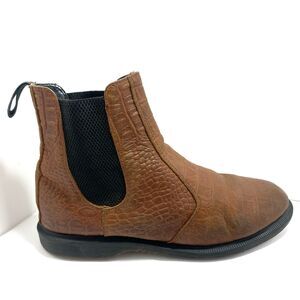 Dr Martens Women's Flora Embossed Soft Leather Croc Chelsea Boot Brown Size 10. The leather is soft. Great Preowned condtion with normal wear has a surface mark on one of the boots leather that doesnt go all the way through (please see pictures for over all quality).