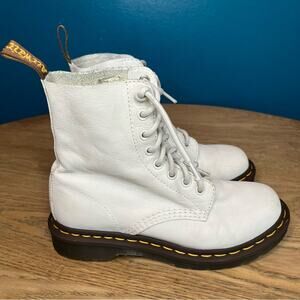 Dr. Martens Women's Pascal Combat Boot Soft Leather 8 Eye Chalk White Size 6