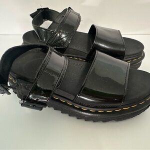 Dr. Martens Women's Patent Leather Platform Open Toe Sandals Strappy Black US 7
