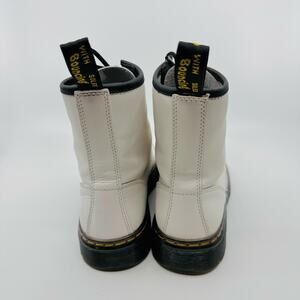 Womens White Leather Lace Up Combat Boots Bouncing Soles by Dr. Martens, Zavala, US Size 5M, UK4, EU37, Lace Up Ankle Boots, Leather upper, Lace-up closure, Yellow stitching, Cushioned insole, Rubber lug outsole, Casual, Cushioned, Comfortable, Breathable, All season shoes,