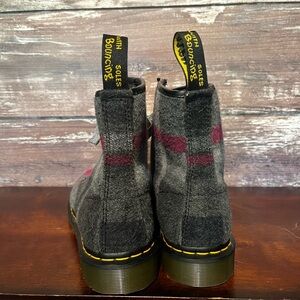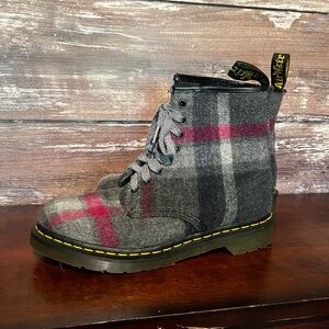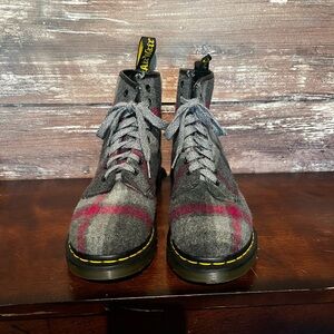 Wool castel Dr. Marten boots in a grey plaid. Lace up front and minimal wear!
