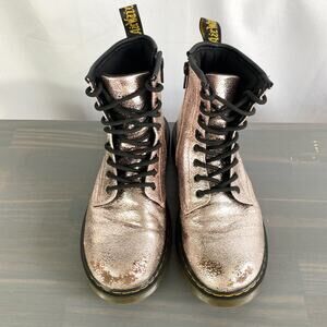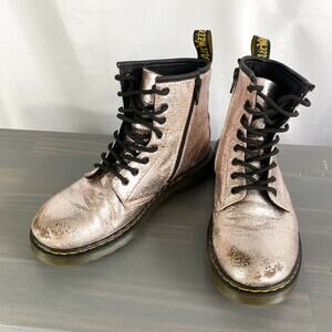 Dr. Martens Y2K Combat Boots Girls 4 Women 6 Disco Crinkle Metallic Pink Suede