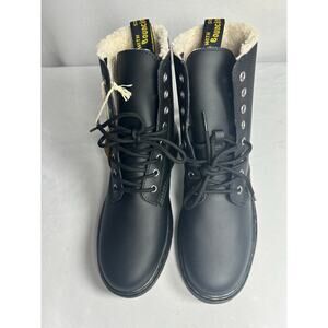 Dr. Martens Zavala Fur Lined Lace-up Combat Boot Black Leather Womens Size 8 NEW