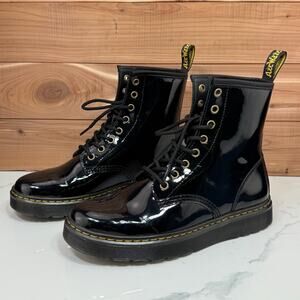 Dr Martens Zavala Glossy Leather Lace Up Boots Combat Moto Grunge Goth Women's 8