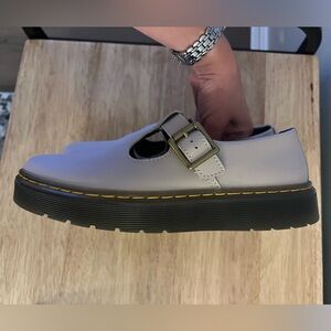 Doc Marten Mary Janes. Gently worn only a few times. Slight creasing but to be expected with a smooth leather. No scrapes or marks that I can see. US size 7 UK size 5, smooth leather, color Vintage Taupe