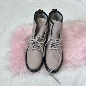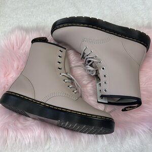 Dr. Martens Zavala Taupe Leather Combat Boots NWOB
