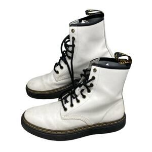 Dr. Martens Zavala White Black Leather Combat Boot Size 9 Doc Marten Booties