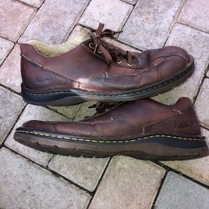 Nice medium brown leather leather lace up oxfords by Dr. Martens. Style 11200. Good used condition. Showing some wear, recently treated with leather honey. Needs new laces.