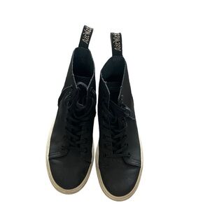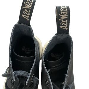Super cute black Chucka boots by Dr. Marten’s. Black waterproof material with white rubber soul. Lace up.