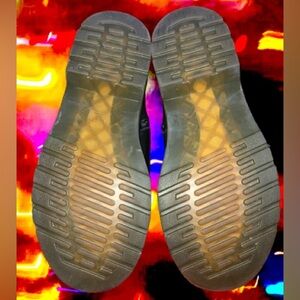 This is a pair of genuine leather, womens’/mens’ Doc Martens in great condition. I’m not sure what the actual style is, but they have a soft, padded lining. The soles look great, as well.