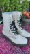 Worn Once Dr. Martens x Marc Jacobs “Redux Grunge Collection” Limited Edition Tall Boots. Vanilla colored shiny patent 10 eye boots. “Dr. Martens x REDUX GRUNGE COLLECTION 1993 / 2018 MARC JACOBS” black stitched tongue patch. Bright silver eyelets. High contrast black stitching against the creamy off-white leather. Black laces, and sole trim. DM’s trademark yellow welt stitching and black and yellow AirWair with Bouncing Soles pull loops.